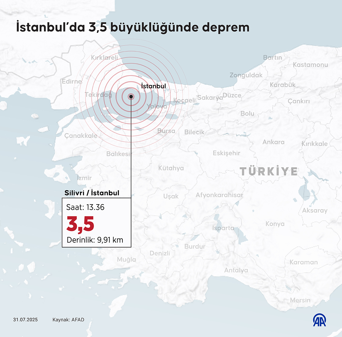 İstanbul’da 3,5 büyüklüğünde deprem