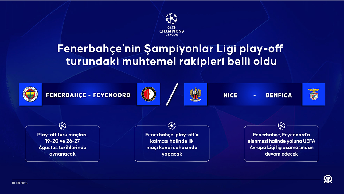 Fenerbahçe'nin UEFA Şampiyonlar Ligi play-off turundaki muhtemel rakipleri belirlendi. (Grafik: Mehmet Yaren Bozğun/AA)
