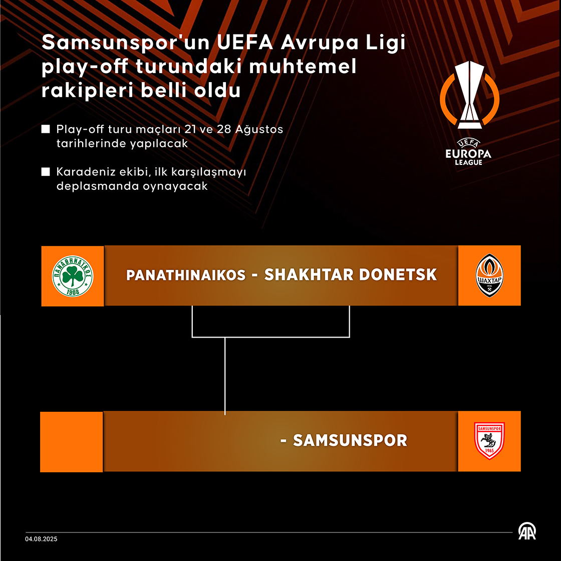 Samsunspor'un UEFA Avrupa Ligi play-off turundaki muhtemel rakipleri belirlendi. (Grafik: Mehmet Yaren Bozğun/AA)