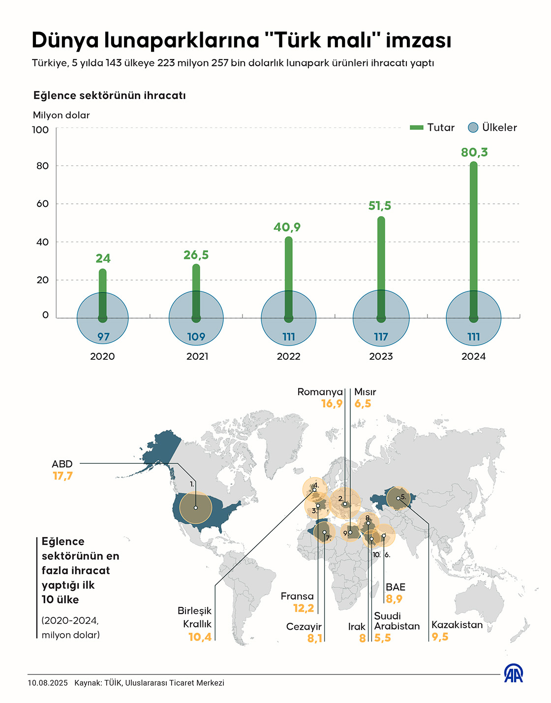 Türkiye, 5 yılda 143 ülkeye 223 milyon 257 bin dolarlık ihracat yaptı. (Grafik: Elif Acar/AA)