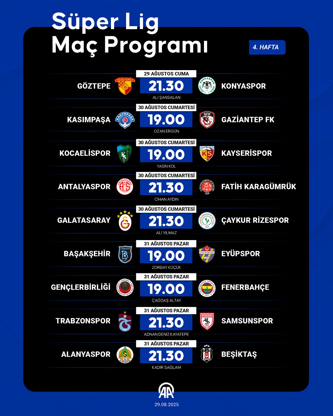 Trendyol Süper Lig'de 4. hafta maçları 29 Ağustos Cuma günü oynanacak Göztepe-Konyaspor maçıyla başlayacak. (Grafik: Kemal Delikmen/AA)