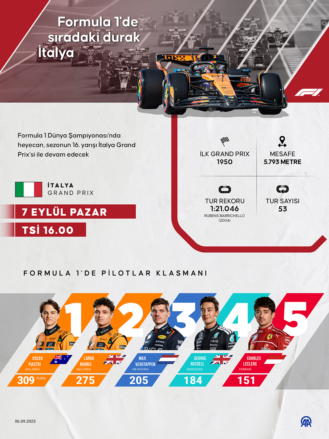 Formula 1 Dünya Şampiyonası'nda heyecan, sezonun 16. yarışı İtalya Grand Prix'si ile devam edecek. (Grafik: Kemal Delikmen/AA)