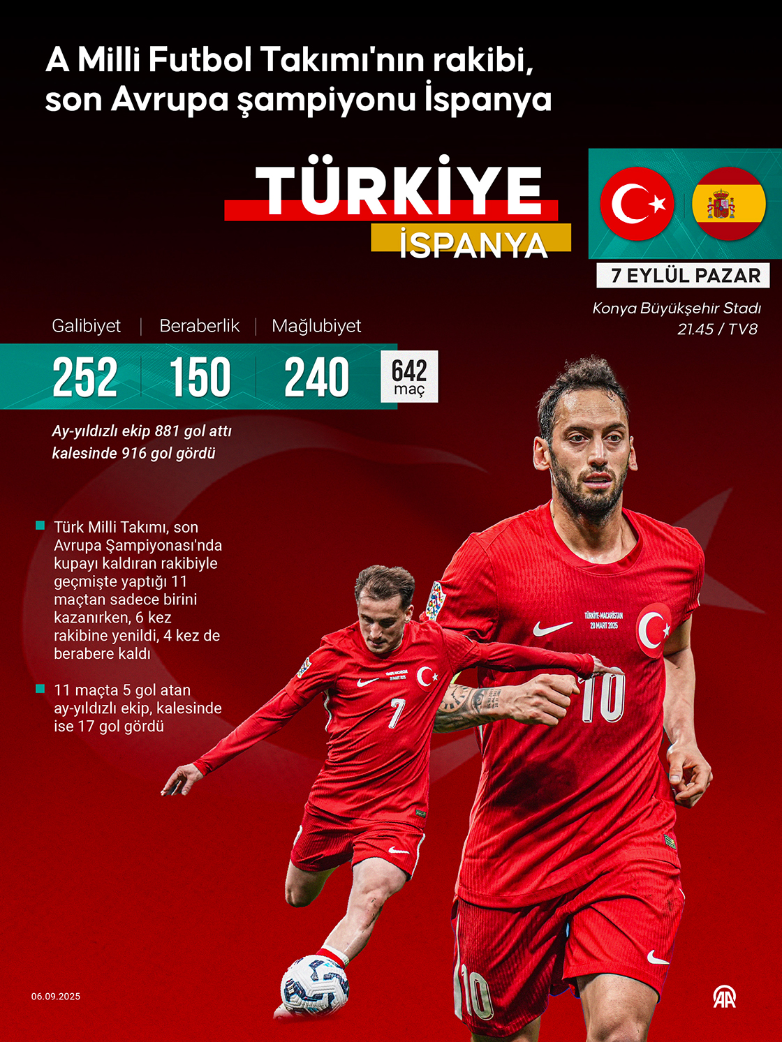 Ay-yıldızlı ekip, 2026 FIFA Dünya Kupası Avrupa Elemeleri E Grubu ikinci maçında İspanya'yı konuk edecek. (Grafik: Kemal Delikmen/AA)