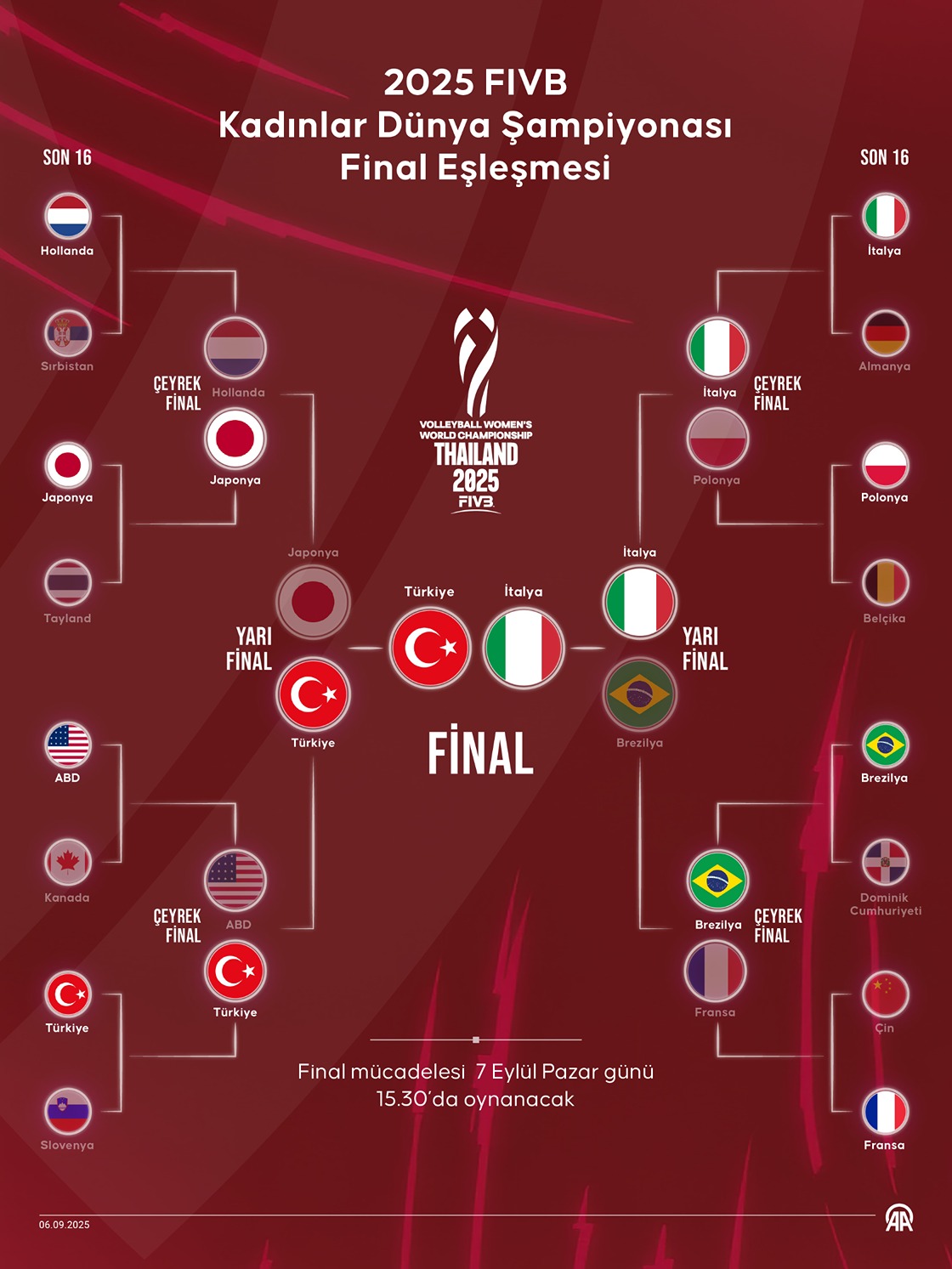 2025 FIVB Kadınlar Dünya Şampiyonası Final Eşleşmesi