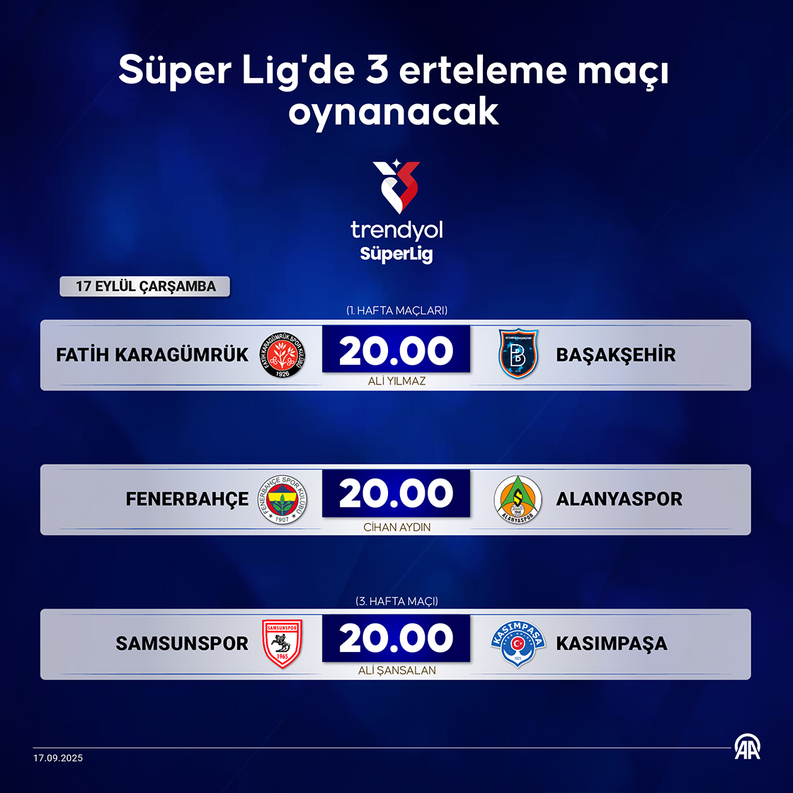 Trendyol Süper Lig'de 1. ve 3. haftanın erteleme maçları oynanacak. (Grafik: Ufuk Celal Güzel/AA)