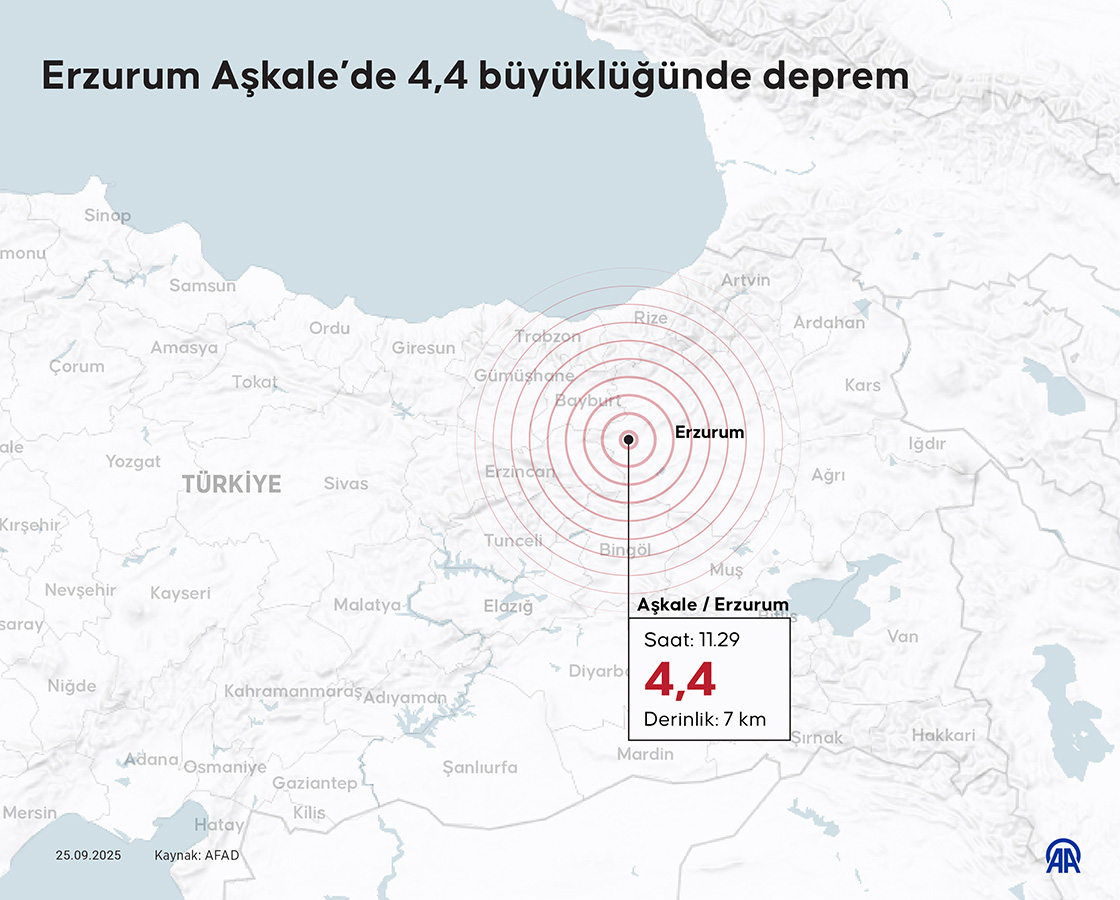 Erzurum'un Aşkale ilçesinde saat 11.29'da 4,4 büyüklüğünde deprem meydana geldi. (Grafik: Bedirhan Demirel/AA)