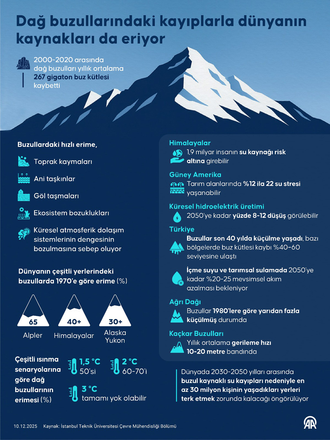 Dağ buzullarındaki kayıplarla dünyanın kaynakları da eriyor