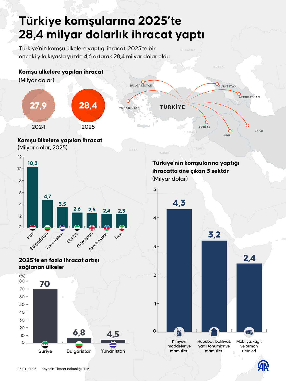 Türkiye komşularına geçen yıl 28,4 milyar dolarlık ihracat yaptı