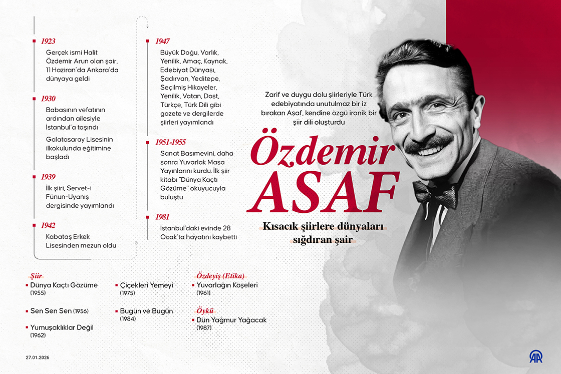 Zarif ve duygu dolu şiirleriyle Türk edebiyatında unutulmaz bir iz bırakan Asaf, kendine özgü ironik bir şiir dili oluşturdu. (Grafik: Bedirhan Demirel/AA)