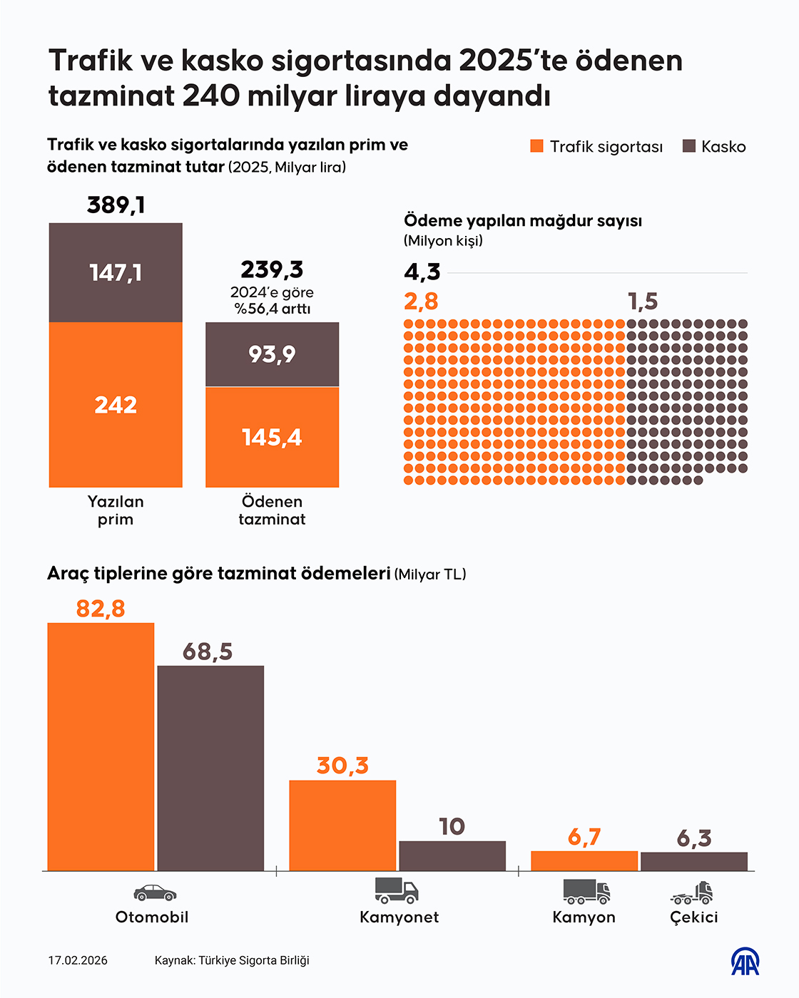 Trafik ve kasko sigortasında geçen yıl ödenen tazminat 240 milyar liraya dayandı