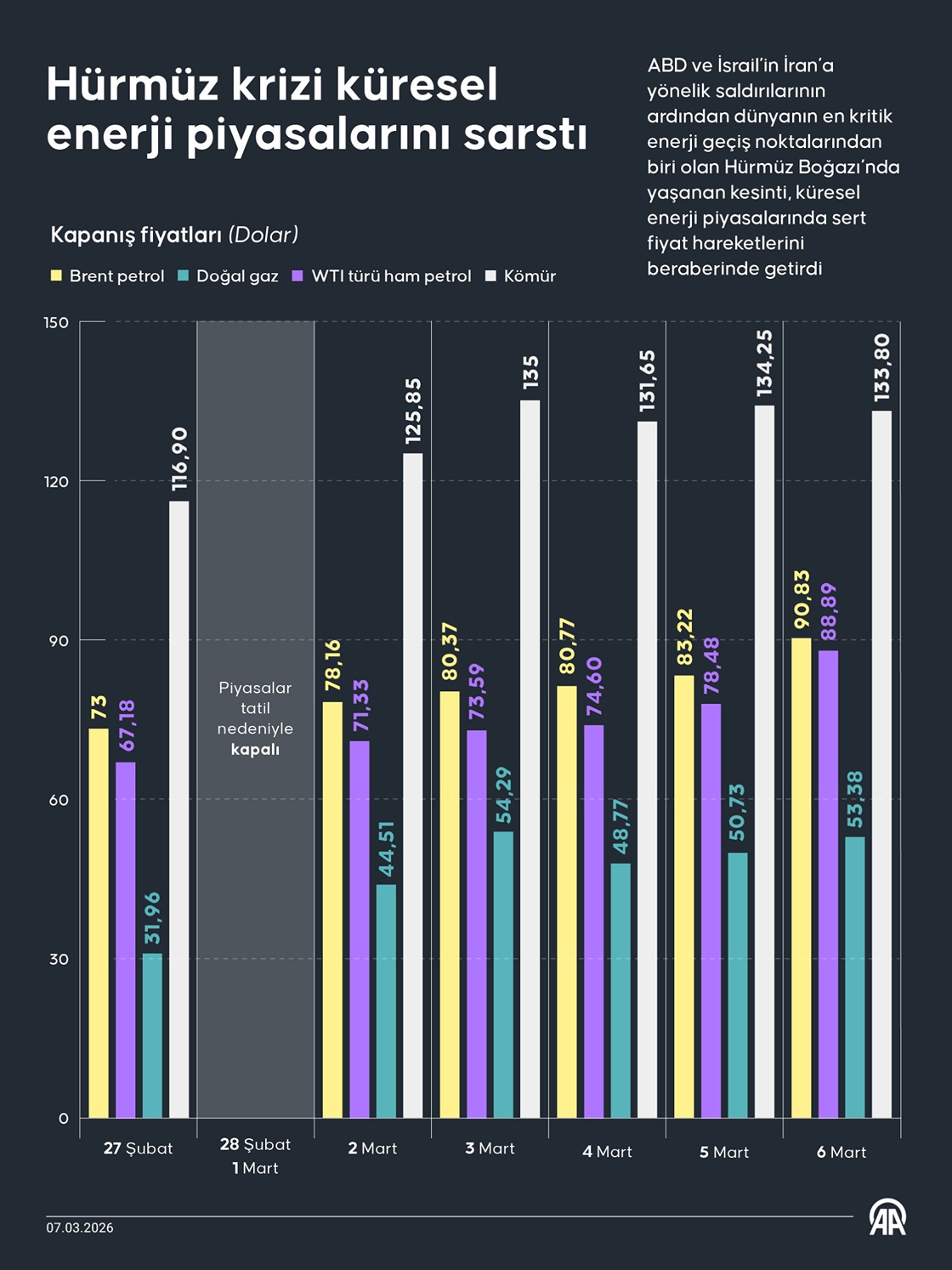ABD ve İsrail’in İran’a yönelik saldırılarının ardından dünyanın en kritik enerji geçiş noktalarından biri olan Hürmüz Boğazı’nda yaşanan kesinti, küresel enerji piyasalarında sert fiyat hareketlerini beraberinde getirdi.