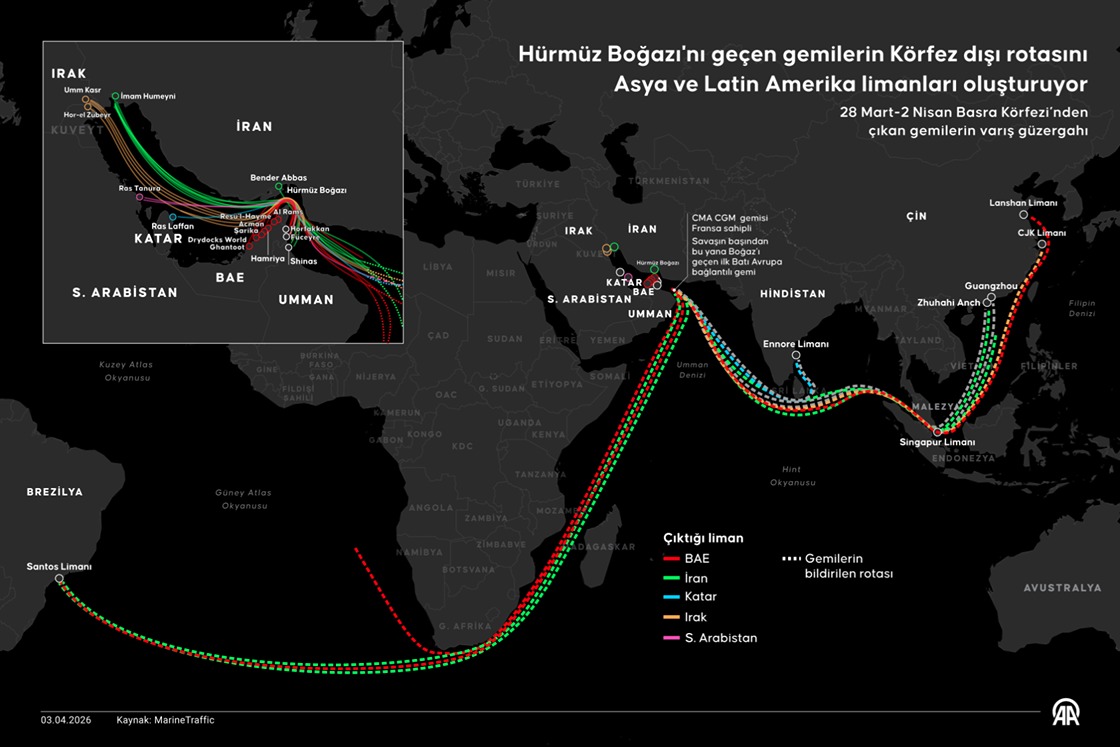 Hürmüz Boğazı'nı geçen gemilerin Körfez dışı rotasını Asya ve Latin Amerika limanları oluşturuyor