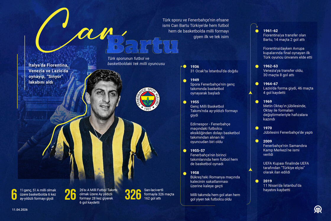 Can Bartu, hem futbol hem basketboldaki başarılarıyla Türk sporunda farklı bir yer edindi. Futbol hayatı boyunca orta sahada oynayan Can Bartu, bir milli maçta da kalede görev aldı.