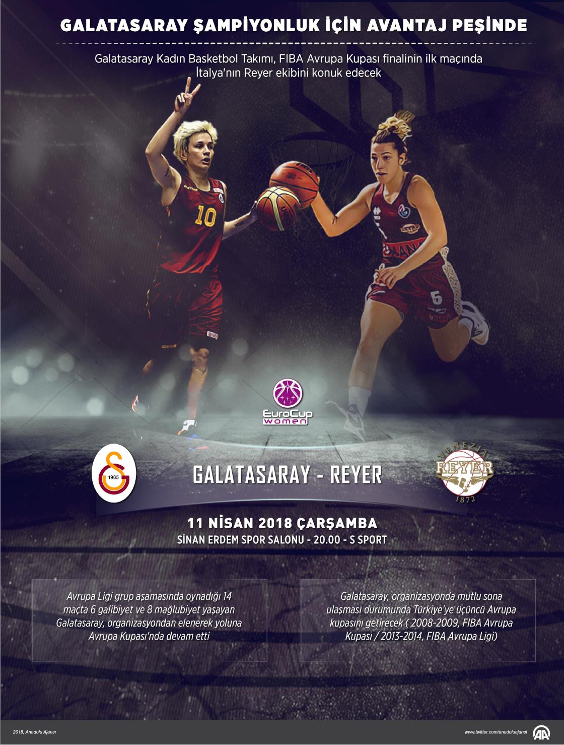 Galatasaray Kadın Basketbol Takımı, FIBA Avrupa Kupası finalinin ilk maçında yarın İtalya'nın Reyer ekibini konuk edecek. Sinan Erdem Spor Salonu'nda oynanacak karşılaşma, saat 20.00'de başlayacak ve S Sport'tan canlı yayınlanacak. Sarı-kırmızılı takım, bu sezon FIBA Kadınlar Avrupa Ligi'nde başlayan mücadelesini Avrupa Kupası'nda sürdürdü. Avrupa Ligi grup aşamasında oynadığı 14 maçta 6 galibiyet ve 8 mağlubiyet yaşayan Galatasaray, organizasyondan elenerek yoluna Avrupa Kupası'nda devam etti. Avrupa Kupası'na çeyrek finalden dahil olan Galatasaray, bu turda İtalya temsilcisi Spar Citylift Girona'yı eleyerek yarı finale yükseldi. Yarı finalde de İspanya ekibi Perfumerias Avenida'yı eleyen sarı-kırmızılı takım, adını finale yazdırdı. ( Kemal Delikmen - Anadolu Ajansı )10 Nisan 2018•Güncelleme: 10 Nisan 2018
