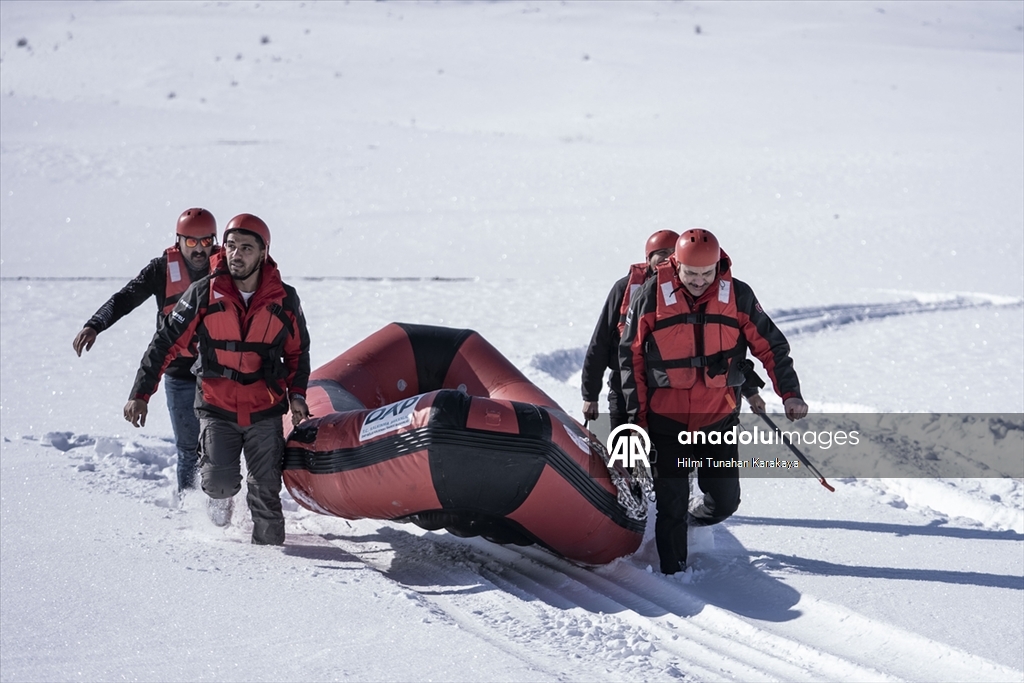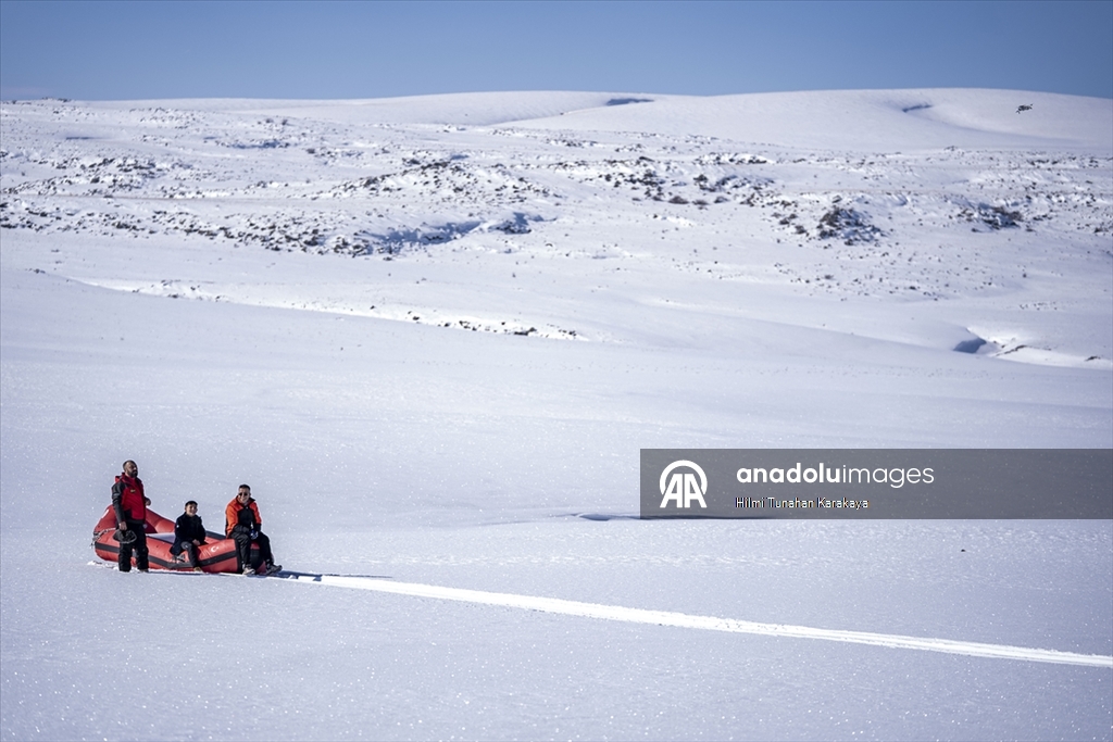 "Burada botlarla tepeye çıkıyoruz. Ardından botla buz tutmuş göl yüzeyine doğru kar raftingi yapıyoruz. Amacımızı Erzurum'da sadece kayak sporunun değil, her türlü kış sporunun yapılabildiğini göstermek. Doğada keyifli güzel bir gün geçirmek istedik. Böylece ilimizin tanıtımına katkıda bulunmak istiyoruz."