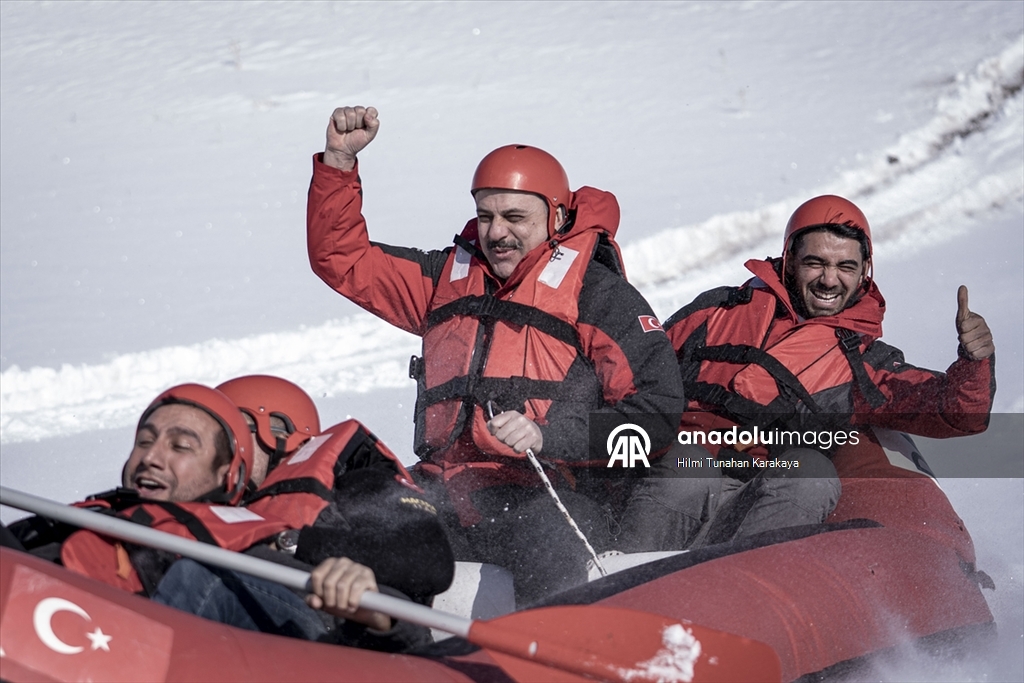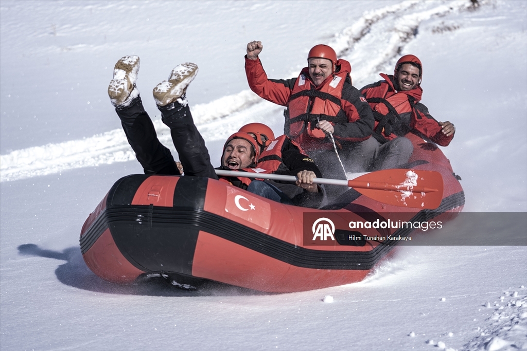 Ardından yüzeyi tamamen donmuş Söğütlü Göleti'ne geçen katılımcılar, burada Vali Çiftçi'nin de katıldığı kar raftingi yapıp eğlendi.