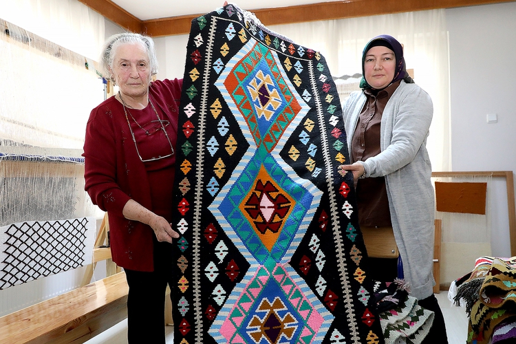 Kilim ve halı dokuma kursunun 83 yaşındaki kursiyeri bildiklerini gençlere öğretiyor