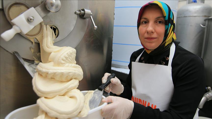 Kütahya'nın Tavşanlı ilçesinde kendi işletmesini kuran 40 yaşındaki Serap Karabacak'ın manda sütünden yaptığı dondurma rağbet görüyor.