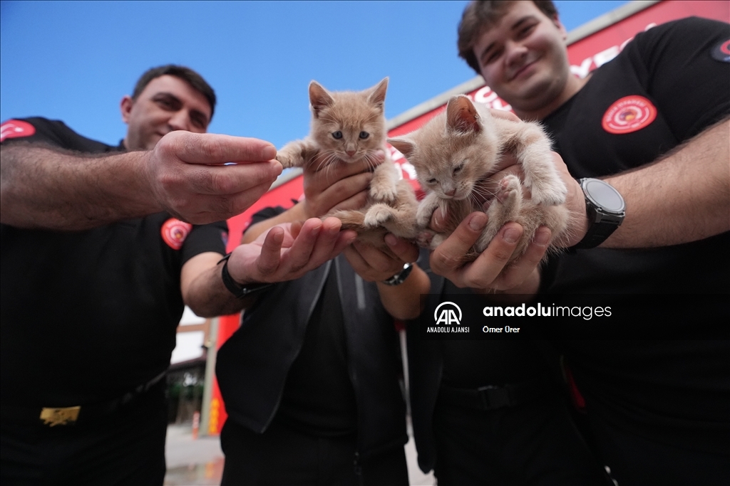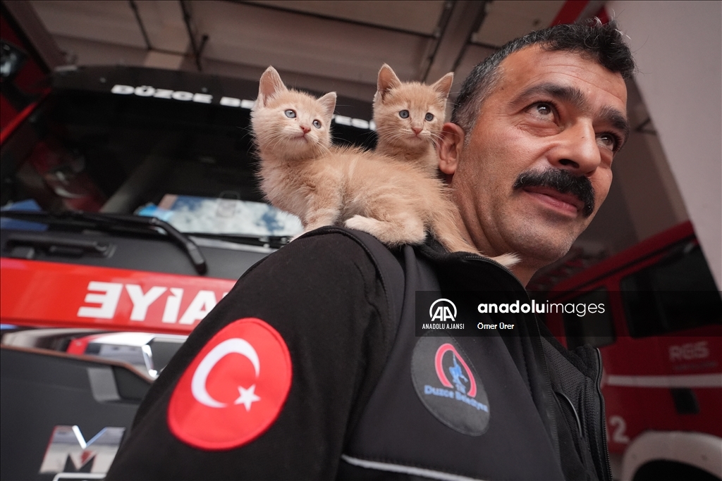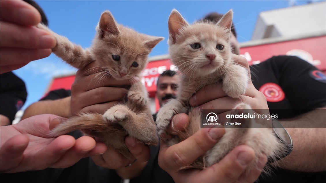 Düzce'de sıkıştıkları aracın motor bölümünden kurtarılan 2 kedi yavrusu, itfaiye şoförü tarafından sahiplenildi.
