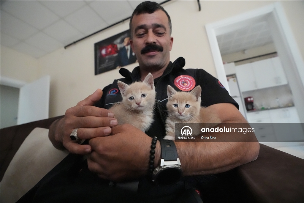 Kurtarma ihbarına gittiği kedi yavrularını sahiplendi
