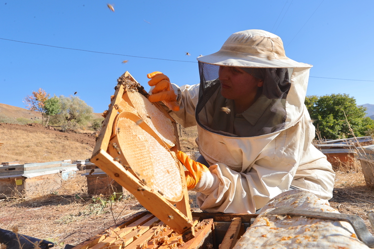 Hakkari'de arıcılık yapan ağabeyinden etkilenerek şehirden köyüne dönen Zümrüt Pala, devlet desteğiyle aldığı kovanlarla aile mesleğini yapmaya başladı.
