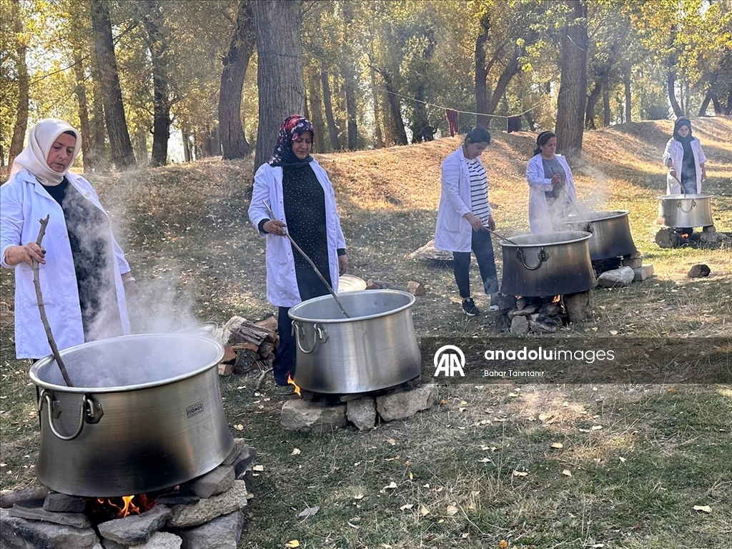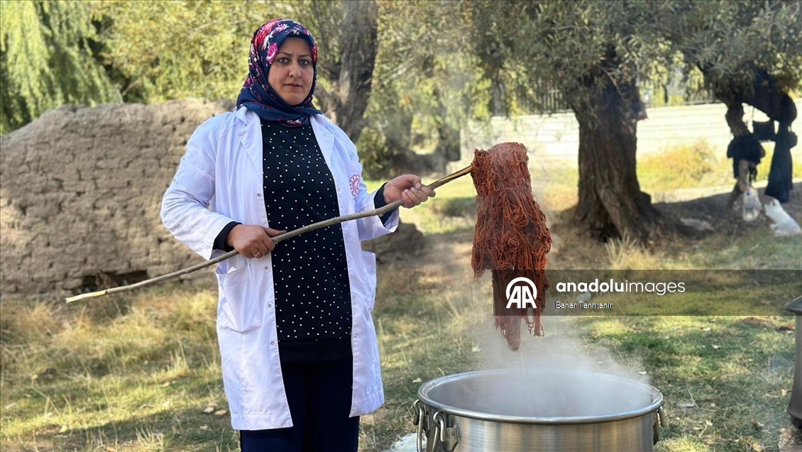 Van Olgunlaşma Enstitüsünde görevli kadınlar, koyun yünü ve keçi kılından elde ettikleri ipleri, kazanlarda bitki kökleriyle kaynatarak tek tek renklendiriyor.