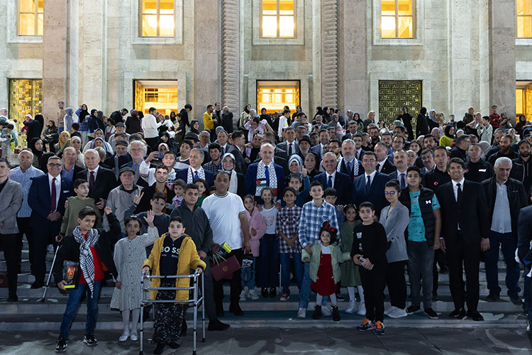 Kurtulmuş, konuşmasının ardından İçişleri Bakanı Ali Yerlikaya ile Gazzeli misafirlerle sohbet etti.