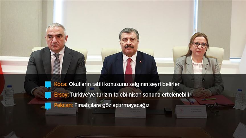 Bakan Ersoy ise Ersoy, "15 Nisan virüs açısından hassas bir tarih. Bu sebeple mümkünse yurt dışından Türkiye'ye turizm talebinin nisan sonuna ertelenmesi mantıklı geliyor." diye konuştu.