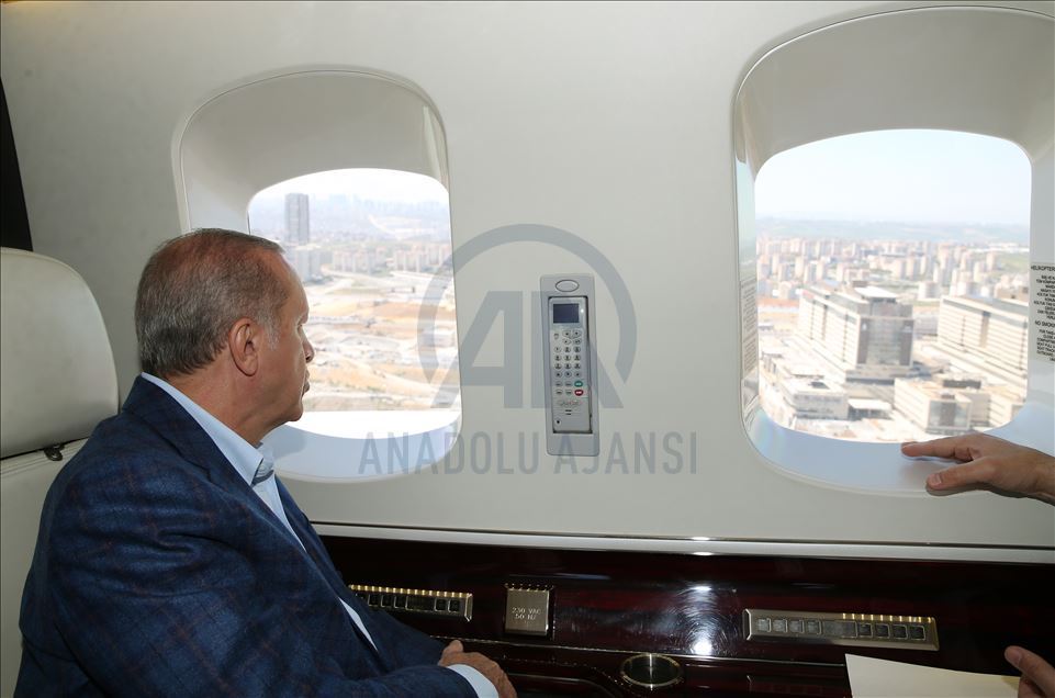 Cumhurbaşkanı Erdoğan, yapımı devam eden hastaneleri havadan inceledi