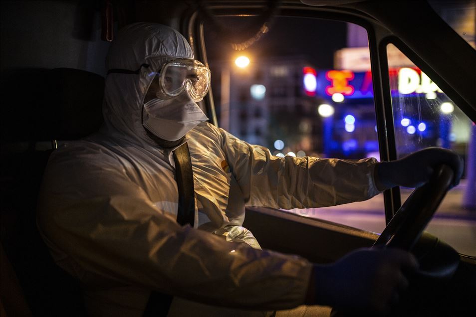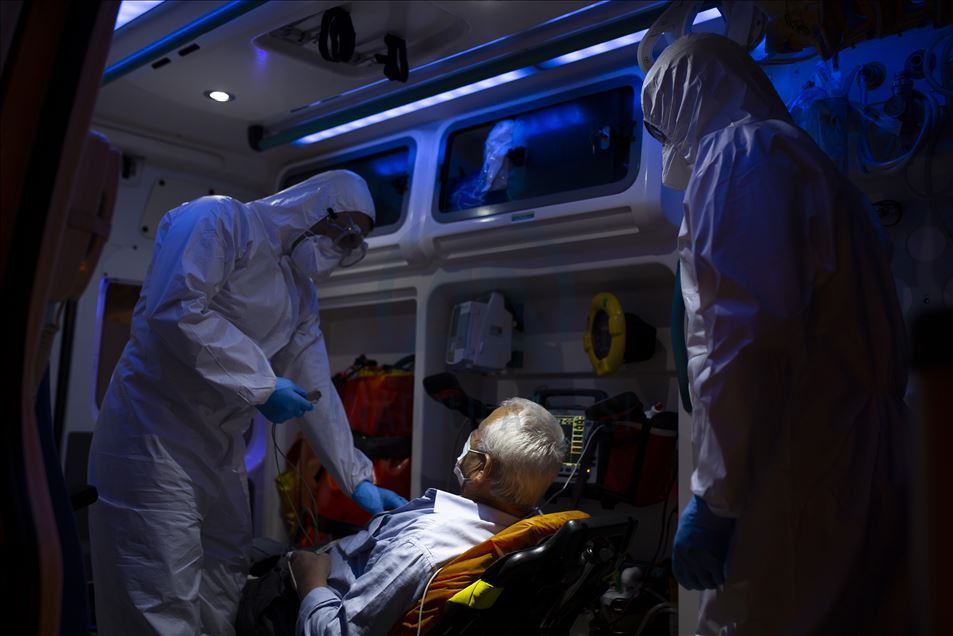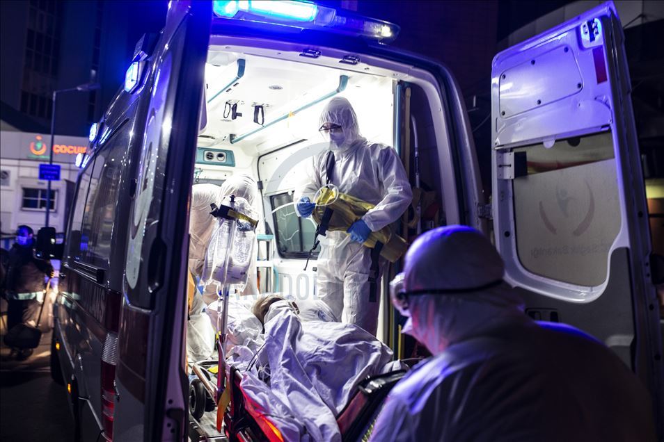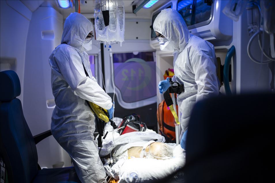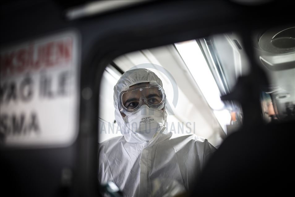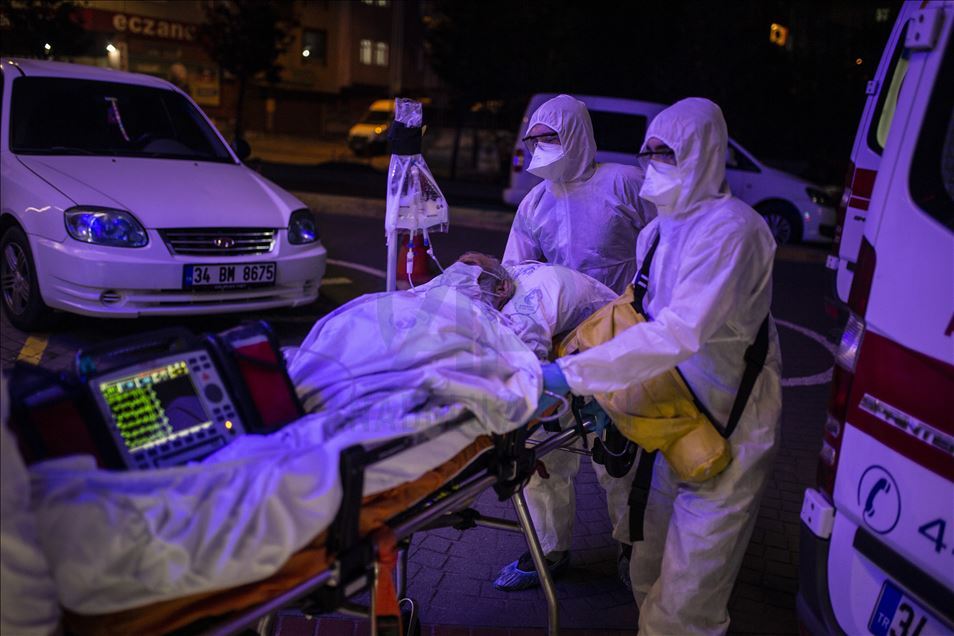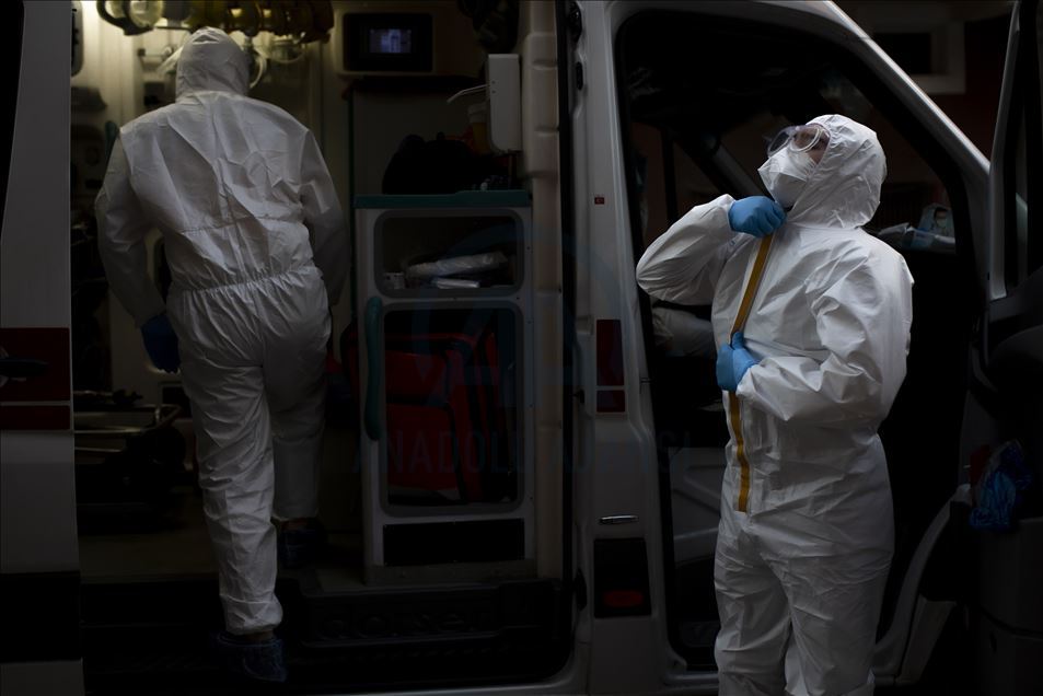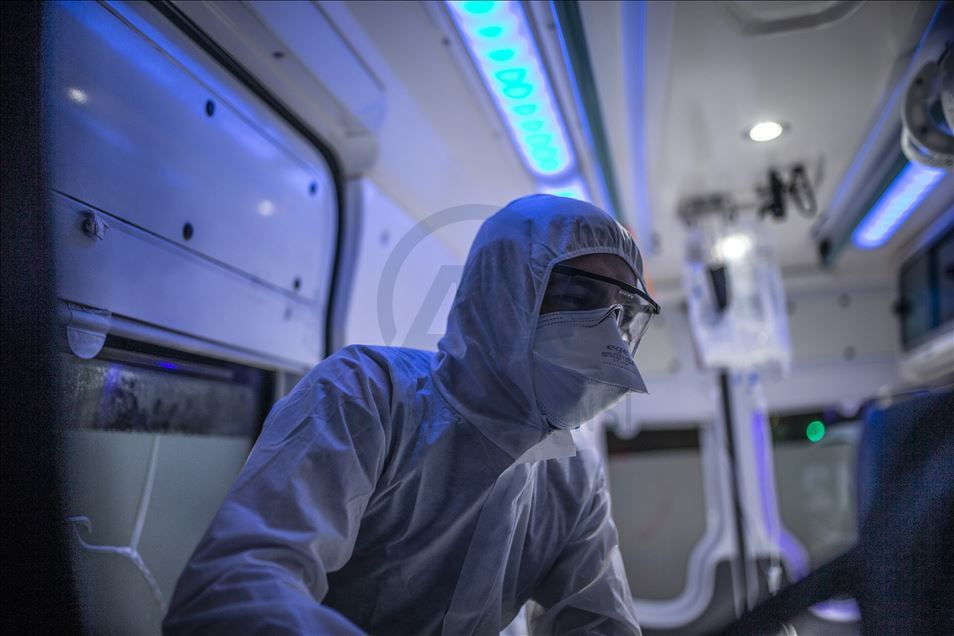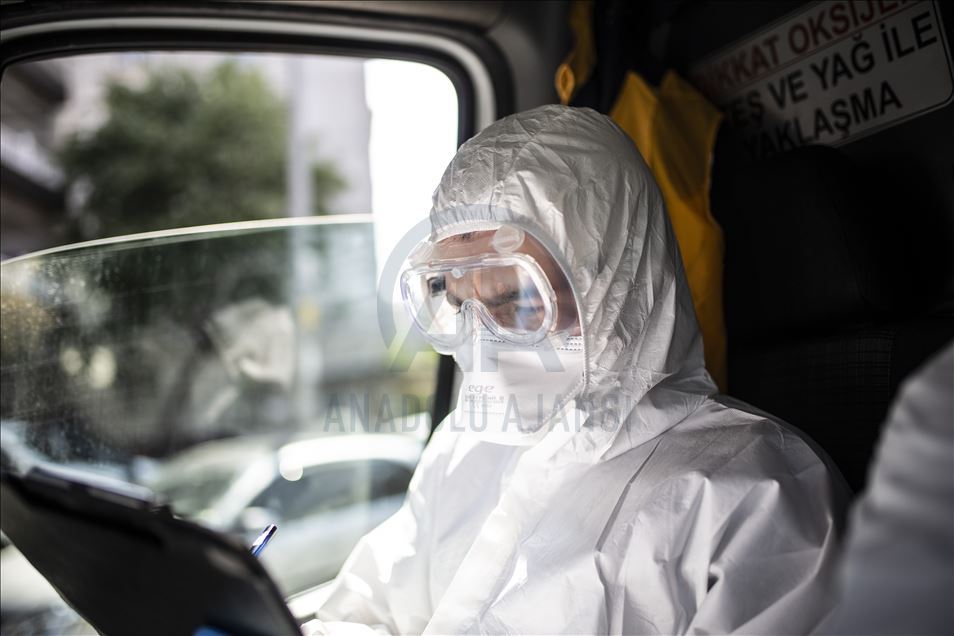 Tüm dünyayı etkisi altına alan, adeta hayatı durma noktasına getiren yeni tip koronavirüs (Kovid-19) ile mücadelenin en ön safında yer alan 112 acil yardım ekiplerinin zorlu mesaisi aralıksız sürüyor. Türkiye'de kararlılıkla sürdürülen Kovid-19 ile mücadele sürecinde İstanbul Sağlık Müdürlüğü İl Ambulans Servisi Başhekimliği Bahçelievler 2 Nolu Acil Yardım İstasyonu ekiplerinin 24 saatlik mesaisi, AA ekibi tarafından görüntülendi. ( Arif Hüdaverdi Yaman - Anadolu Ajansı )