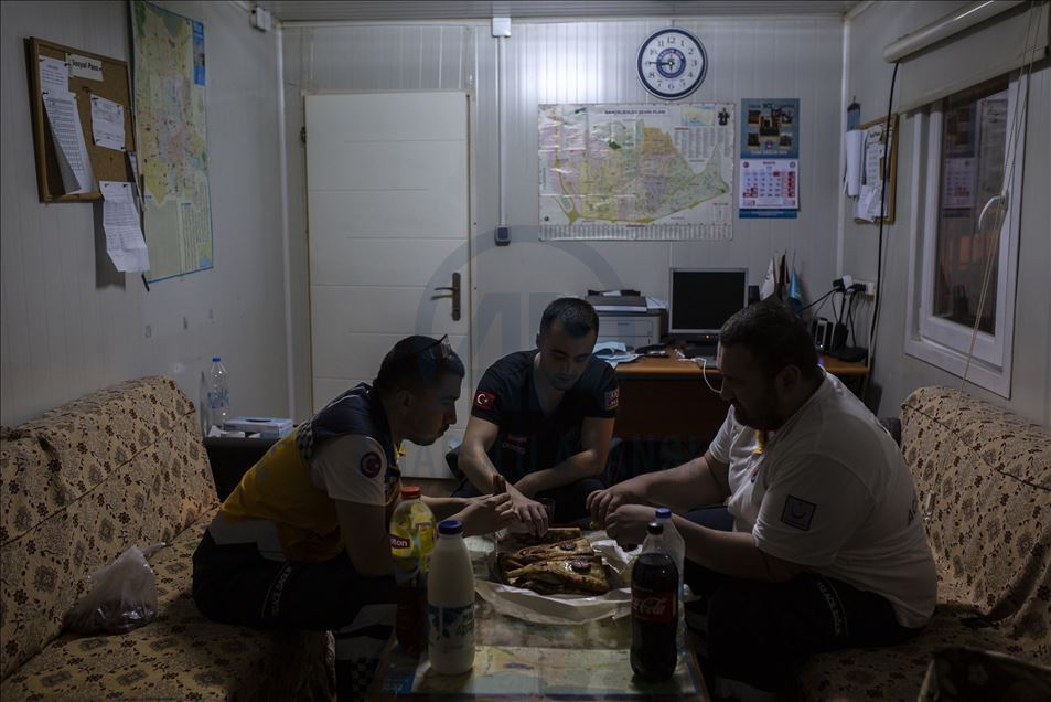 Sevdiklerine özlem dolu günler geçiren 112 personeli, içinde bulunulan ramazan ayı dolayısıyla da iftar ve sahur için mesai arkadaşlarıyla birlikte aynı masayı paylaşıyor.