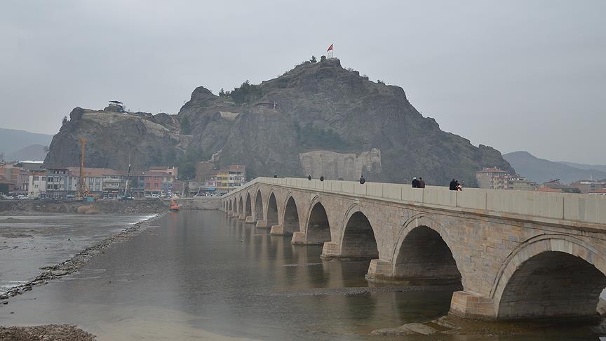 Çorum'un Osmancık ilçesinde Kızılırmak Nehri'nin üzerine 1485-1489 yılları arasında inşa edilen Koyunbaba Köprüsü, 5 yıl süren restorasyon çalışmasının ardından orijinal haline getirildi.