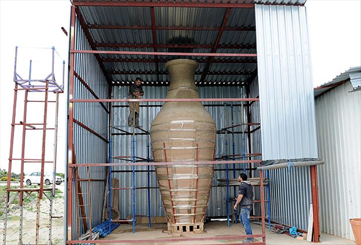 Antalya Büyükşehir Belediyesi ve Antalya Kültür Sanat Vakfı işbirliğinde yaptırılan 7 metre çevre çapı, 5,40 metre yüksekliğindeki dev çömlek, yaklaşık 3 aylık çalışmanın ardından tamamlandı. İtalya'da düzenlenen Dünya Çömlek Yarışması'nda ikinciliği bulunan 35 yıllık çömlek ustası Ahmet Taşhomcu tarafından Antalya-Serik yolundaki özel atölyede yapılan dev çömlek, fırınlanma aşamasına geldi.