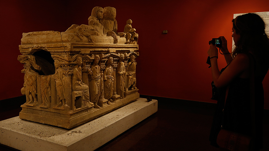 Özellikle yabancı turistler, çelenkli, sütunlu ve madalyonlu lahitlerin önünde fotoğraf çektirerek, çıktıkları zaman yolculuğunu ölümsüzleştiriyor.