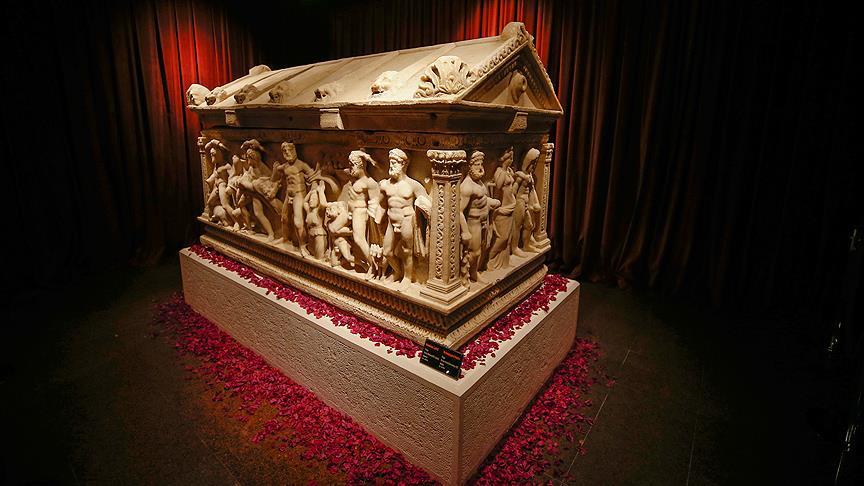 Herakles lahdini, Antalya Müzesi'nde Perge dönemine ait lahitlerin bulunduğu salonda özel bir köşede sergilediklerini anlatan Demirel, özel olarak ışıklandırıp etrafına döktükleri çiçeklerle süslediklerini dile getirdi.
