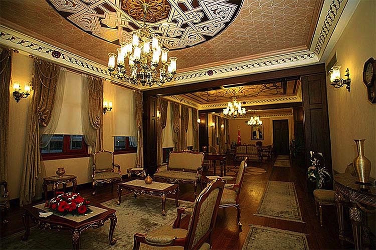 Hükümet konağı temsil niteliği olduğu ve yurt dışından çok sayıda konuğa ev sahipliği yaptığı için kaliteli, görsel açıdan zengin ve ihtişamlı bir mekan haline getirilmiş ve geleneksel Türk detayları, basitlikten uzak, geçmişinden gelen değerleri hissettirecek biçimde ince ince işlenmiş. Yapının dört bir köşesine sabit mobilyalar binanın yapıldığı dönemin detaylarına uygun olarak tasarlanmış.