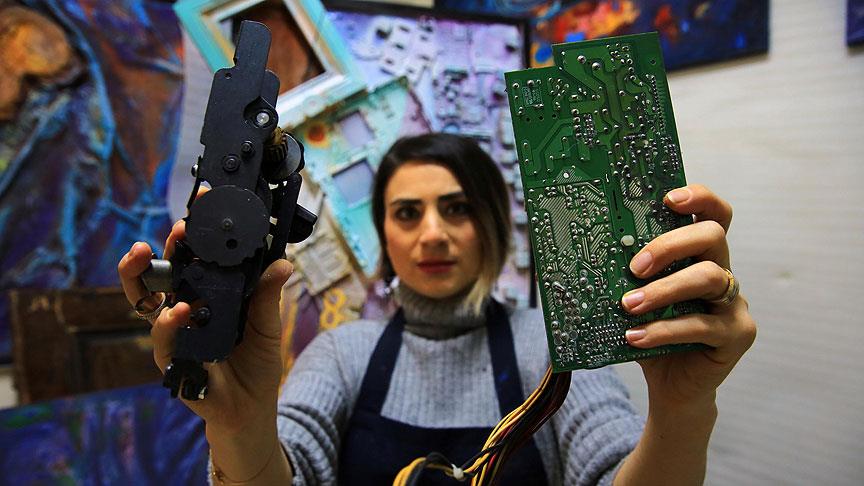 Çalışmaları için ihtiyaç duyduğu malzemelerin büyük bölümünü sanayi hurdalığından temin ettiğini anlatan Güney, kullanılmayan süs eşyaları, kağıt, eski elektronik parçalar başta olmak üzere her türlü atığı değerlendirdiğini belirtti.