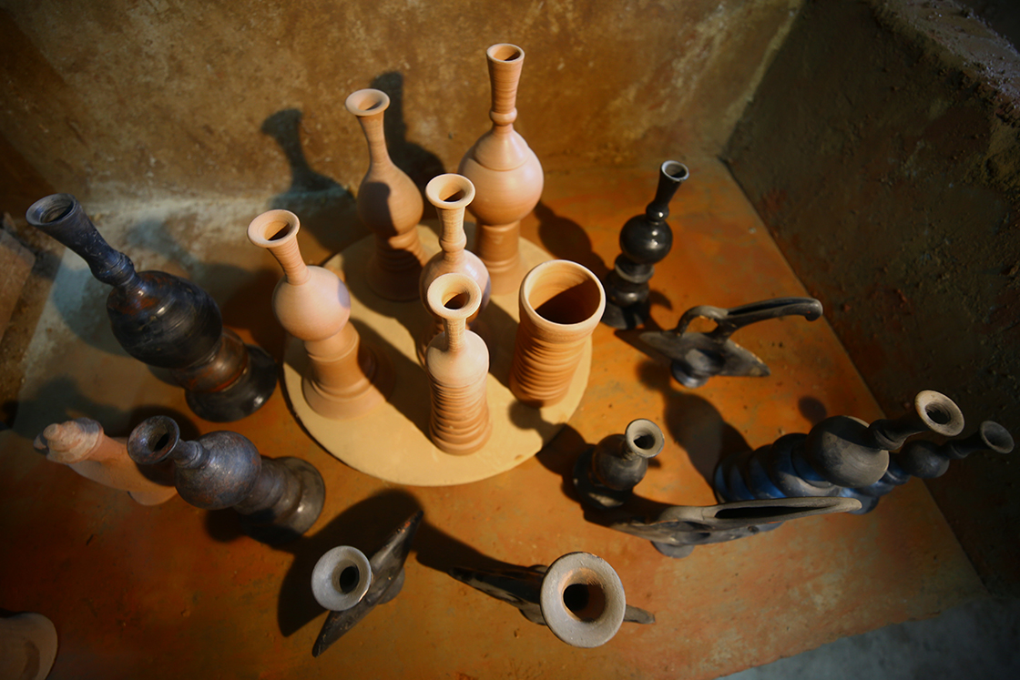 Tezgahta çamura şekil vererek ortaya çıkardığı eserlerini bir hafta oda sıcaklığında kuruttuktan sonra fırında pişirdiğini anlatan Bircan, bazı ürünlere de karartma uygulayıp farklı görünüme kavuşturduğunu kaydetti.