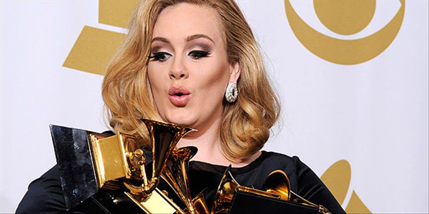 Geceye damgasını "21" albümüyle, yılın en iyi şarkısı ve albümü dahil olmak üzere 6 dalda ödül kazanan İngiliz şarkıcı Adele vurdu. Adele'nin "21" albümü, geçen yıl 6 milyondan fazla satmış ve müzik listelerinin ilk sırasına oturmuştu.