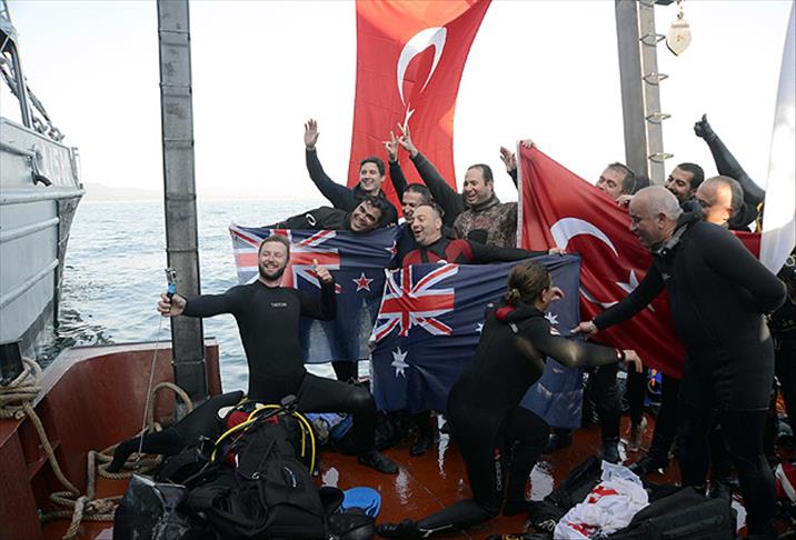 Ekipler, su altında Türk, Avustralya ve Yeni Zelanda, su üstünde ise 16 metrekarelik Türk bayrağı açtı.