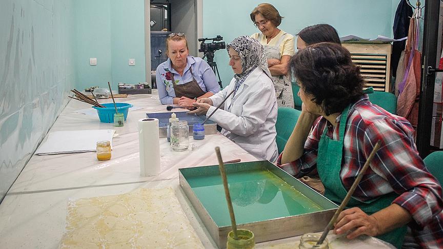 Karadağ'ın başkenti Podgorica'da, Yunus Emre Enstitüsü tarafından verilen ebru kursları yoğun ilgi görüyor.