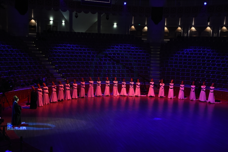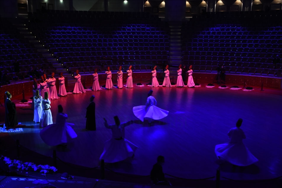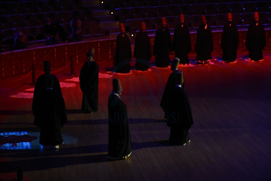 Kovid-19 tedbirleri kapsamında seyircisiz düzenlenen Hazreti Mevlana'nın 747. Vuslat Yıl Dönümü Uluslararası Anma Törenlerinin ilk gününde Konya Türk Tasavvuf Müziği Topluluğu Mevlevi Ayin-i Şerifi yapıldı.