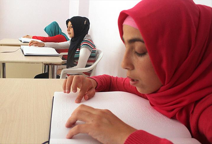 Erzurum'da bir öğretmenin girişimleriyle başlatılan kursta, görme engelli öğrenciler "Braille" alfabesiyle Kur'an-ı Kerim'i öğreniyor.