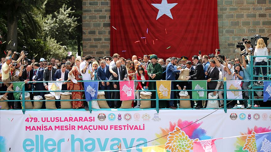 UNESCO'nun İnsanlığın Somut Olmayan Kültürel Mirası Listesi'nde yer alan, bu yıl 479'uncusu düzenlenen Uluslararası Manisa Mesir Macunu Festivali'nde, 6 ton mesir saçıldı.