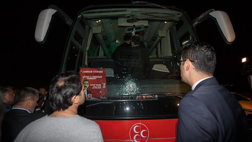 Bu sırada otobüslerinin ön camının gelen bir taşla kırıldığını ifade eden Yıldız, "Otobüsümüz, şehidimize taziyeye gittiğimiz sırada, Cumhur İttifakı'nı hazmedemeyen aşağılık terör örgütü mensuplarının saldırısına maruz kaldı. Allah'ın izniyle yılmayacağız, çalışmalarımıza kaldığımız yerden devam edeceğiz." diye konuştu.
