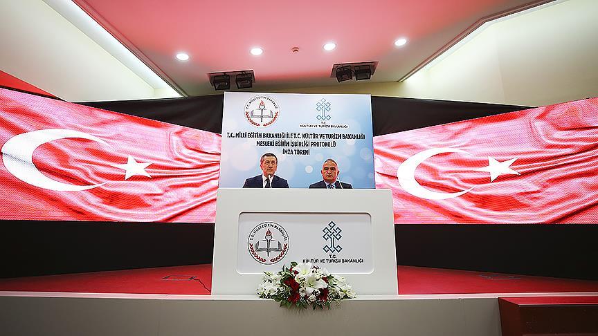 Kültür ve Turizm Bakanı Mehmet Nuri Ersoy, Kültür ve Turizm ile Milli Eğitim bakanlıkları arasında "Mesleki ve Teknik Eğitimi Geliştirme" ve "Geleneksel Türk Sanatlarını Gelecek Nesillere Aktarma ve Yaşatma" alanlarındaki iş birliği protokolünün Milli Eğitim Bakanlığı (MEB) Başöğretmen Salonu'ndaki imza törenine katıldı.