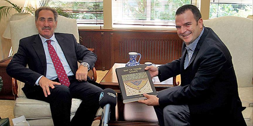Ziyarette Bakan Günay, AA Genel Müdürü Öztürk'e Bakanlığı'nın son yıllardaki çalışmalarından ''Hat ve Tezhip Sanatı'' kitabını, Öztürk de Günay'a, AA'nın 2010 yılı Almanağı ve AA yazılı çini vazo armağan etti.