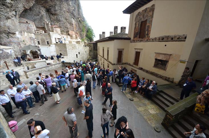 Trabzon'un Maçka ilçesinde yer alan ve 88 yıl aradan sonra ilk kez 2 yıl önce ayin yapılmasına izin verilen Sümela Manastırı'nda bugün yapılacak ayine katılacak ziyaretçiler, manastırın bulunduğu ören yerine geldi.