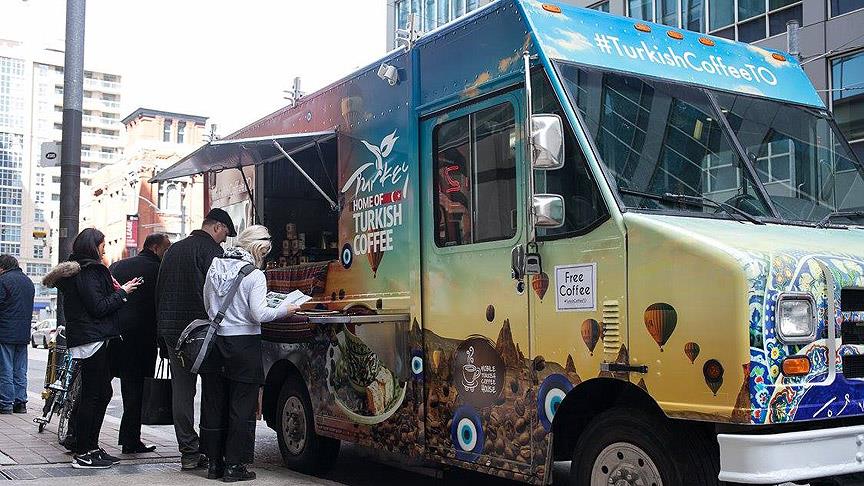 Kendilerini "Türk kahvesi sevdalısı" olarak adlandıran gönüllüler tarafından tasarlanan "Gezici Türk Kahvesi" kamyonu, Kanada'nın başkenti Toronto'da Türk kahvesini ve Türk kahve kültürünü tanıttı.