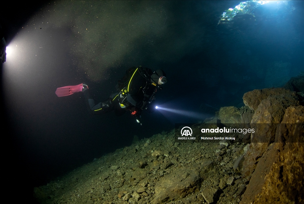 Dalış eğitmeni Tağmaç Saraçoğlu, AA muhabirine, mağarada 9 metreye daldıklarını ve yaklaşık 45 dakika suda kaldıklarını söyledi.